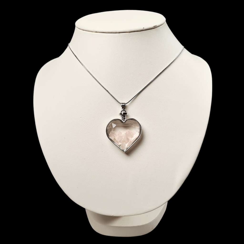 DIAMANT HERZ MIT ROSENQUARZ FÜLLUNG