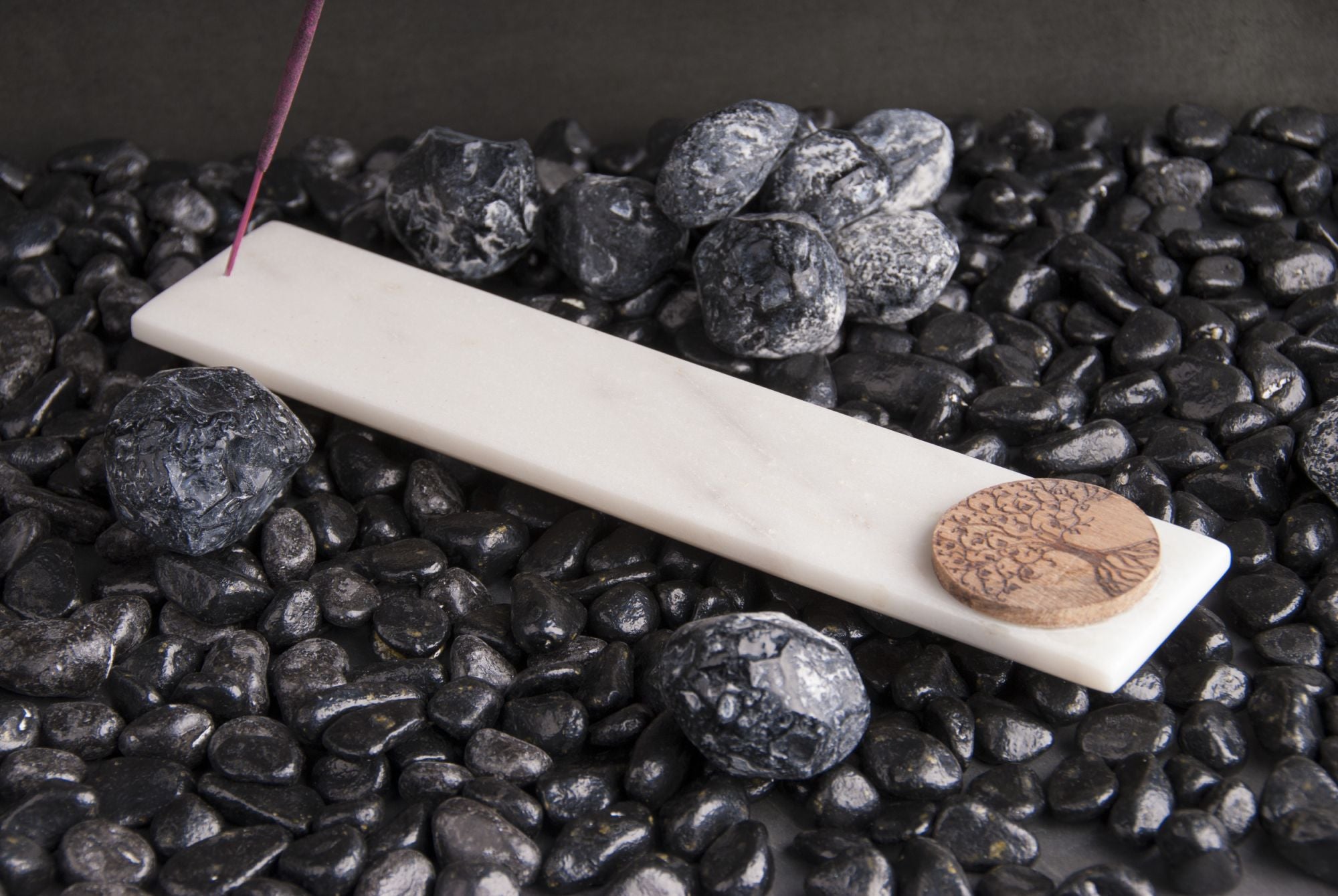 Marmorhalter lang mit Lebensbaum aus Holz