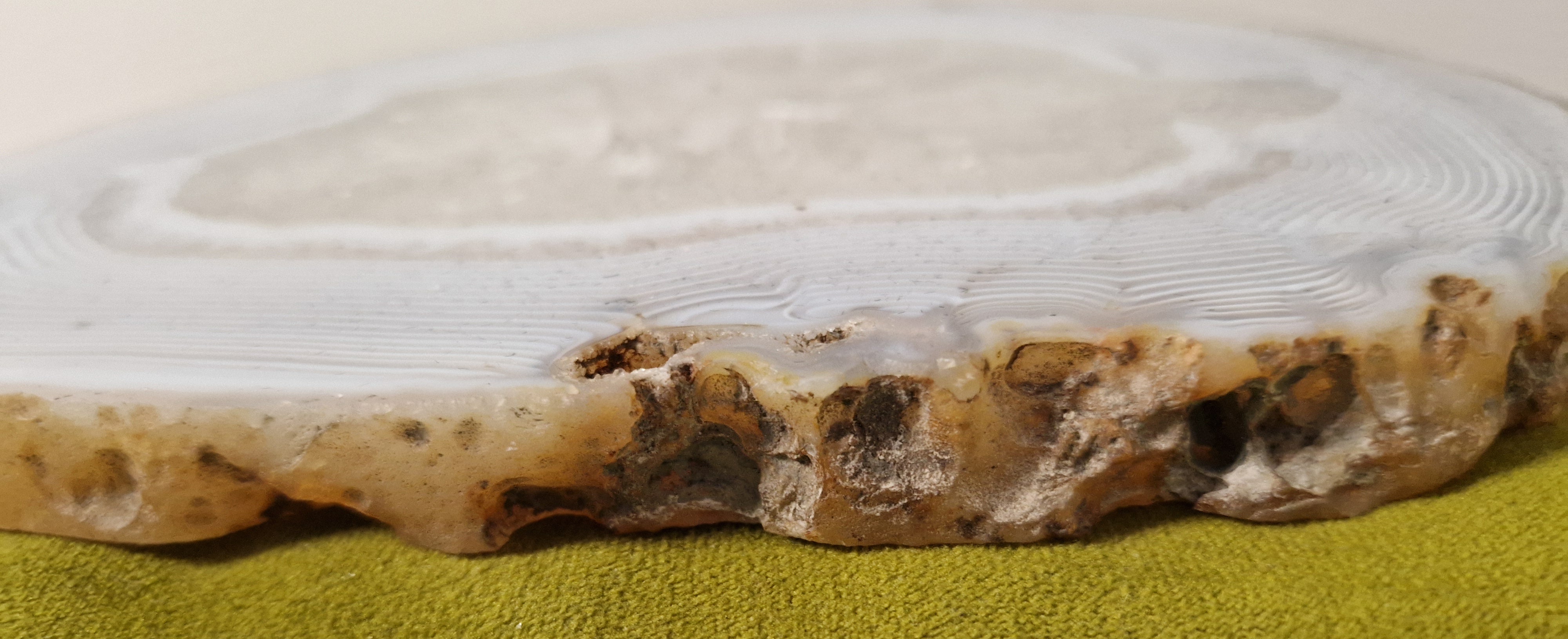 🔹 Struktur: gleichmäßige Bänderung, kristallines Zentrum